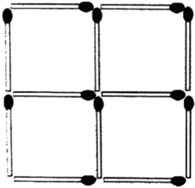请移动3根火柴棍,把5个正方形变成3个正方形。