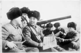 那时,我们在解放军某部炮连当兵,我是九班班长。3月5日,学雷锋纪念日,我们班战士利用军事训练休息时间读报学习,沈阳军区《前进报》特邀记者拍摄了这张照片。读报学习中,战友们纷纷表示,要以雷锋同志为榜样,发扬“钉子”精神,严格训练,苦练杀敌本领……正是基于这样的思想认识,我在14年的军旅生涯中不断进步,由一名普通战士成长为营级干部。(河北张家口 马存海 69岁)
