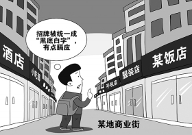 黑底白字惹争议, 言称设计似丹青。 千店一面难称美, 商家需求要倾听。 设计少些一刀切, 权力边界要拎清。 城市管理莫越位, 严守规则更文明。 文/方知 图/朱慧卿