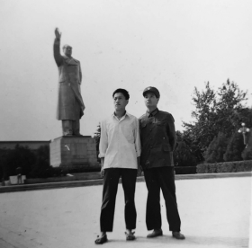 这张照片,是我三哥读大学时与当兵同学的合影,拍摄于1983年夏天。照片的背景是山东师范大学东方红广场。