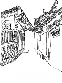 写生是一个阅读风景的过程,是向自然学习,发现自然存在之美的过程。在山水画写生教学中,古村落是难以绕开的写生对象之一。在过程中,如何处理画面景物的主次、大小、虚实、疏密、简繁等关系呢? 步骤一 从屋檐开始画起,先绘制出左侧主体建筑的结构框架,画的时候注意窗台和门的转折关系。 步骤二 画出门、窗、窗台,以及墙面各部分的纹理。木纹和墙砖切勿平均铺设,且要拉开疏密对比。然后,绘制出右侧建筑主体结构,画的时候要注意屋顶、飞檐、门洞及石椅的透视关系。 步骤三 按照透视关系勾画出墙砖,每一块墙砖大小要避免平均,变化尽量丰富。接下来,完成石板路面的绘制,按照近大远小的透视关系铺设出石板的蜿蜒形态,越远越密越小。 步骤四 以相对简约的用笔补画出远景建筑,并以远密近疏的方式铺填路面石块,画的时候力争石块形态的多样性。最后,添画一抹远山,写生完成。(指导老师/聂彦锋 中国青年美术家协会理事、山东理工大学美术学院副教授) 编辑插嘴 都说百闻不如一见,百见不如一次亲身体验。相比纸上教学,名师现场传授无疑有着难以替代的优势。为更好地服务老年习画者,本报将不定期邀请国画名师推出“边游边学”项目,通过寓教于乐、玩学结合的方式,让大家收获别样的写生体验。如您对这方面有意向,欢迎和本版编辑(18673167043 彭编辑)联系。
