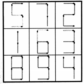 请移动2根火柴棍,使得图中每行、每列相加之和都是15。