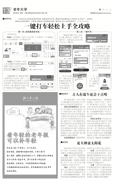 烈日炎炎/大雨倾盆/寒风刺骨,在路边招手叫车,看到的空车都是别人约好的,太无助了。您是否遇到过这样的情形?不要急,跟我学,用滴滴老年版一键叫车,两三分钟车就来了。(本报记者刘霞) 第一步:找到滴滴老年版 有两种方法。 方法一 打开微信→首页下方点“我”→点“服务”→点“滴滴出行”→点“更多服务”→点“助老打车”。 方法二 打开微信→首页上方点搜索符号搜索“滴滴老年版”小程序,点击打开。 温馨提醒:在“滴滴老年版”小程序首页,点击右上角“…”,点击“添加到我的小程序”,以后再次使用时,只需要在微信首页将页面往下滑,就能在“我的小程序”里轻松找到“滴滴老年版”。 第二步:一键叫车 “滴滴老年版”首页上方有3个键,“网约车”“出租车”“电话叫车”,也就是说,您有3种方式可以一键叫车。 点击“网约车”→确认起点位置是否准确,不准确的话,可以手动修改→输入目的地→“确认呼叫快车+出租车”,您可以只勾选快车或出租车,在下方“爱心服务”处,可以选择携带有大件物品如轮椅,这样,系统将根据您的需求派车。 点击“出租车”→确认起点位置是否准确,不准确的话,可以手动修改→“呼叫出租车”。 点击“电话叫车”,会转接人工客服为您叫车。