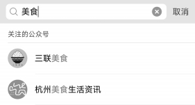 在“公众号”名录里上下滑动可以查看所有关注的公众号,也可以点击顶部搜索框,输入关键字如“美食”搜索,查看相关的公众号。(本报记者刘霞)
