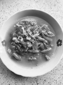 挑选肉丝瓜1—2条,清洗去皮,用菜刀削成柳叶形状。准备一些肉丝或肉末。先把丝瓜倒入锅内翻炒几下,随即放入肉丝和一点猪油炒匀,然后倒入清水大火煮开。看火候适当搅动,快出锅时再放入紫苏(葱姜蒜可依个人口味添加),然后放盐煮一下,即可盛出。紫苏叶末也可垫在菜碗底,不用放入锅中。盐既不宜多亦不可早放,否则,丝瓜汤会变得黑而混浊,看相不好。
