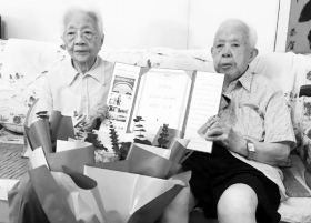 家住北京的101周岁的温寒江(图右)和98周岁的吴秀都是教育工作者,离休后勤于锻炼身体和脑力,都热爱学习。 离休后,他俩养成了一个习惯:每天早上7时前,先打一套太极拳(15分钟左右),然后开始吃早饭,至今雷打不动。午睡到下午3点起来,再走路15分钟。 “饮食一点也不讲究,都是从苦日子过来的。生活俭朴,就是粗茶淡饭。”吴秀唯一提到的一点,就是两人常吃从中国农业科学院买来的蜂王浆,量不大,每人每天一小勺。另外就是早晚两餐喝粥,小米粥、麦片粥、八宝粥自家熬煮,有助于消化,轮换着来。 最后,就是心态平和。“自懂事以来,我的人生观就是不为名、不为利,他也是如此。”吴秀说,“所以一路走来,即使是在人生遭遇挫折时,也能坦然以对。” “如果要说长寿经验,可以总结为:遇事平静,不以物喜、不以己悲,心静自然安。”她说,心情放松、知足常乐对健康有益。(文、图/沈爱群)