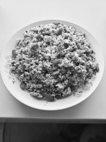 我做的雪花菜,其实就是东北人俗称的小豆腐或菜豆腐。其主要用料是新黄豆,泡涨后用绞肉机绞成粉末,形似雪花。