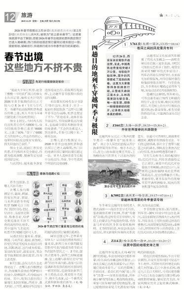 2026年春节假期从2月15日(农历腊月二十八)至2月23日(正月初七),共9天,被称为“史上最长春节”。记者查询旅游平台了解到,目前2026年春节出境游机票和酒店预订已进入高峰期,热门目的地酒店预订量同比增长超过一倍。提前规划、错峰出行、长线旅行成为今年春节出行的关键词。 巧省钱 先定行程提前锁定低价 “提前大半年订机票,能省下整整一半的钱!”浙江的颜女士告诉记者,她和丈夫计划在2026年春节假期的农历正月初八(2月24日)飞往马尔代夫。为避开临近假期机票和酒店价格上涨,两人早在今年6月就完成了往返机票预订。 颜女士回忆,当时两人的往返机票总价约12000元,如今同航班价格已涨至18000元,上涨了50%。“省下了6000元当然很开心,但也有些担心,如果时间临近出现突发情况,损失只能自己承担。” 颜女士说,提前订票虽更优惠,但行程尚未完全确定,仍需为航班调整、健康等突发情况预留空间。 与此同时,越来越多游客选择提前出行,将假期行程前移,主动避开春节假期中段的出行高峰。 来自重庆的杨先生计划2月13日出发,和妻子、孩子一起前往泰国旅游。“这样可以避开春节出行高峰,机票也便宜了不少。”在他看来,选择在春节前出行,不仅能降低出行成本,也能减少排队和拥挤带来的疲惫感。“不会到处都是人、到处排队,节奏可以慢下来。”杨先生说。 去哪儿旅行数据显示,2026年春节出境游机票和酒店预订已进入高峰期,热门目的地酒店预订量同比增长超过一倍。更多人选择在春节长假中分段出行,节前、节中形成两个明显的出境高峰。 热力值 泰韩马稳居C位 去哪儿旅行数据显示,越南、韩国、印度尼西亚、泰国、马来西亚跻身单程机票1500元以下的热门低价区间;老挝、尼泊尔、乌兹别克斯坦、格鲁吉亚、哈萨克斯坦落在不挤不贵的高性价比地带,其中国内飞老挝的机票不到1000元即可入手。 从酒店预订量来看,泰国、韩国、马来西亚、越南、新加坡、印度尼西亚等短线东南亚目的地,因距离近、出行成本较低、签证政策友好、温度适宜,契合春节假期轻松游的需求,仍为主流选择。 9天长假,会玩儿的人也走得更远了。去哪儿旅行数据显示,热度蹿升最快的TOP10目的地中,除韩国外,均为较远目的地。其中,埃及以酒店预订量增长3.3倍领跑,西班牙、澳大利亚、土耳其、葡萄牙等长线目的地的酒店预订量增长超2倍。 阖家出国过年,怎样最有年味儿?从目前的搜索和预订量来看,新西兰皇后镇TSS厄恩斯劳号蒸汽船成为春节最火热的国外景区之一。2月底,国内正值寒冬,新西兰却暖意融融,登上这艘与泰坦尼克号“同龄”的百年蒸汽船,游客可以在挂满新春装饰的牧场庄园里吃一顿团圆饭,还能体验新西兰本土特色活动,观看牧羊犬赶羊、剪羊毛表演,过一个兼具仪式感和新鲜感的新年。(文/杨金祝 罗田怡 龚善美)