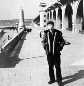 1957年10月15日,武汉长江大桥建成通车。1966年12月,父亲坐上从山东开往湖北的火车。父亲在山东兖州煤机厂工作,这次出差去武汉考察模具设备。这是他第一次来武汉,为了心目中的万里长江第一桥,不顾旅途劳顿,一下火车就直奔长江边。想象过无数次大桥矗立眼前,雄伟壮观,父亲在感慨之余在桥边拍下这张照片。南北温差大,父亲拍照时穿着棉衣,解开了扣子。拍照时,他特意嘱咐摄影师,一定把镌刻有“一桥飞架南北,天堑变通途”的长江大桥纪念碑取在景内。
