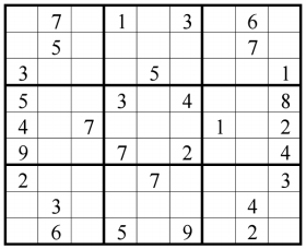 请将数字1—9填入空格内,使每行、每列和每宫内的数字均不重复。