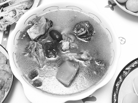 具体做法是:把乌鸡1000克、甲鱼500克剁成小块,洗净备用。锅内加入清水,放入盐、葱段、姜片,把乌鸡、甲鱼块下锅焯水,捞出后用温水洗去浮沫。重新起锅加清水,下入乌鸡、甲鱼块,放入红枣6颗、姜片8克、料酒30毫升、盐25克和适量葱段,大火烧开后转小火慢炖2个小时,至汤浓肉烂前,再加入枸杞3克、胡椒粉2克,煮上两三分钟即可出锅。这道汤非常鲜美甘甜,滋补有营养,且十分好喝。
